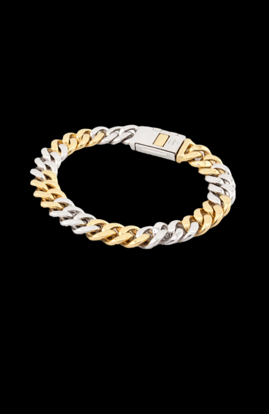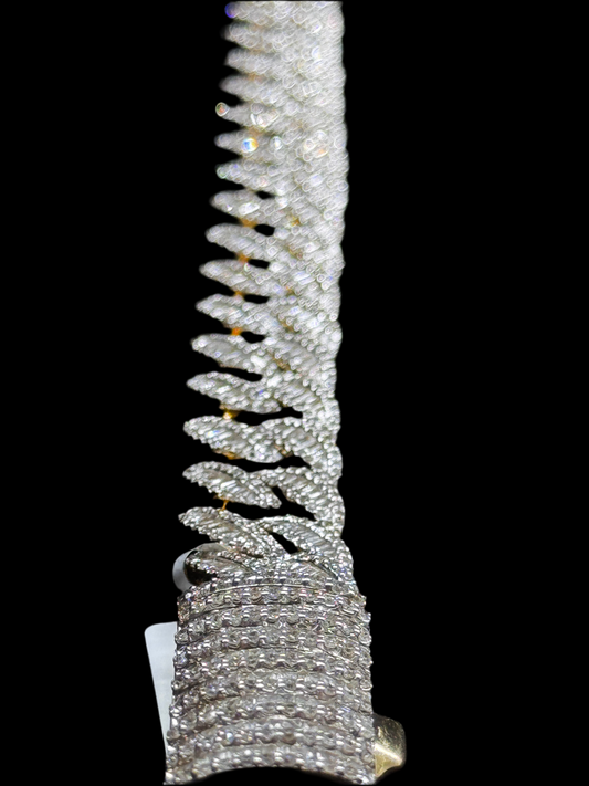 10K Yellow White Gold 2 Tone 3 Row 11mm Honeycomb 7.76Ct Natural Diamond Cuban Bracelet.