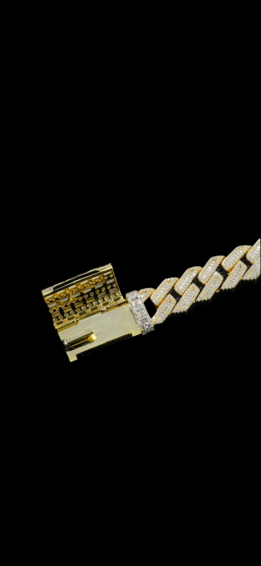 14mm,10K Rose & White Gold Cuban Bracelet, 16Ct Vs1 Natural Diamonds