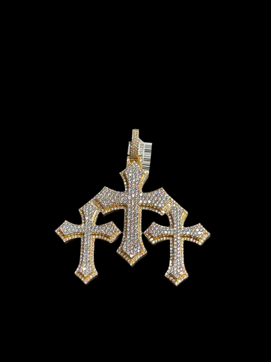 10K Solid White Gold Baguette & Round Cross with 5.44CT VS1 Natural Diamonds
